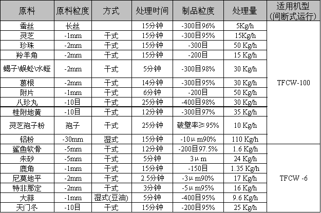 如前述人工牛黃的例子;原粉碎混煉工藝是:原料+溶劑進行混勻→真空干燥10小時→破碎→球磨機粉碎混煉24小時→出料;采用天方微粉機的工藝是:原料干法初混20分鐘→天方微粉機研