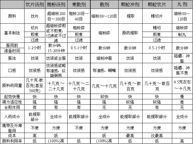 ③參考煎出量的對比關系,參考飲片用藥量的經(jīng)驗,按中醫(yī)理論用微粉中藥重新組方。