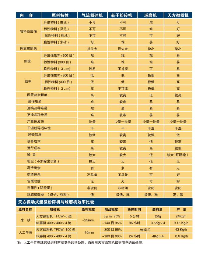 天方超微粉碎機(jī)與其他粉碎設(shè)備性能對照